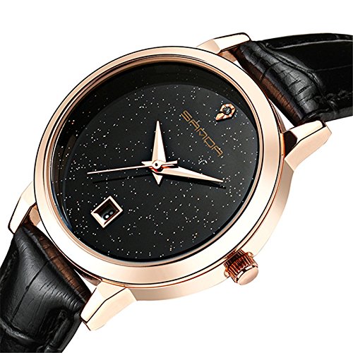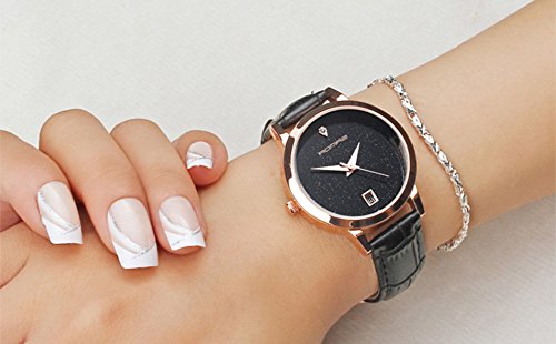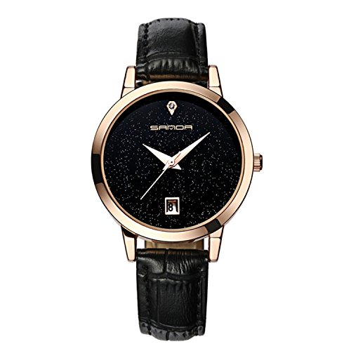 Wdnba Fashion Women Watches Golden Leather Watch Women Dress Clock Calendar Quartz Watch