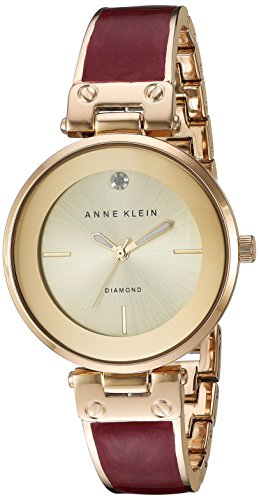 Anne Klein Women's AK/2512BYGB Diamond-Accented Gold-Tone and Burgundy Marbleized Bangle Watch