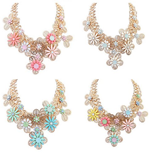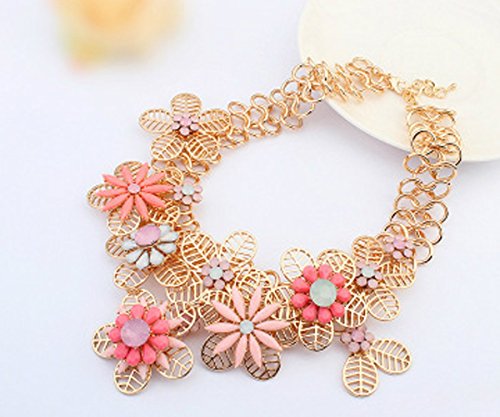-. Title : The Starry Night Elegant Statement Gold Plated Hollow Out Petal Splicing Joker Water Flower Necklace