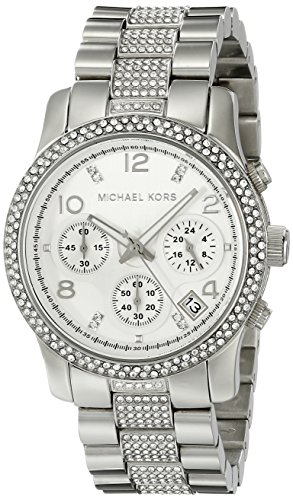Michael Kors Runway Analog Quartz Silver Stainless Crystal Glitz Chronograph Women's Watch MK5825
