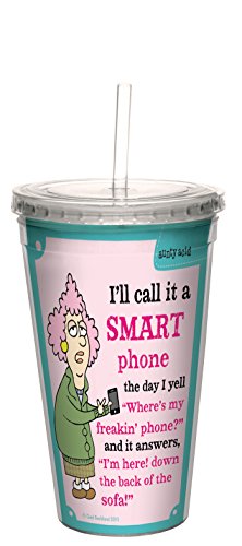 Tree-Free Greetings 16-Ounce Cool Cup with Reusable Straw, Aunty Acid Not So Smart Phone (CC98621)
