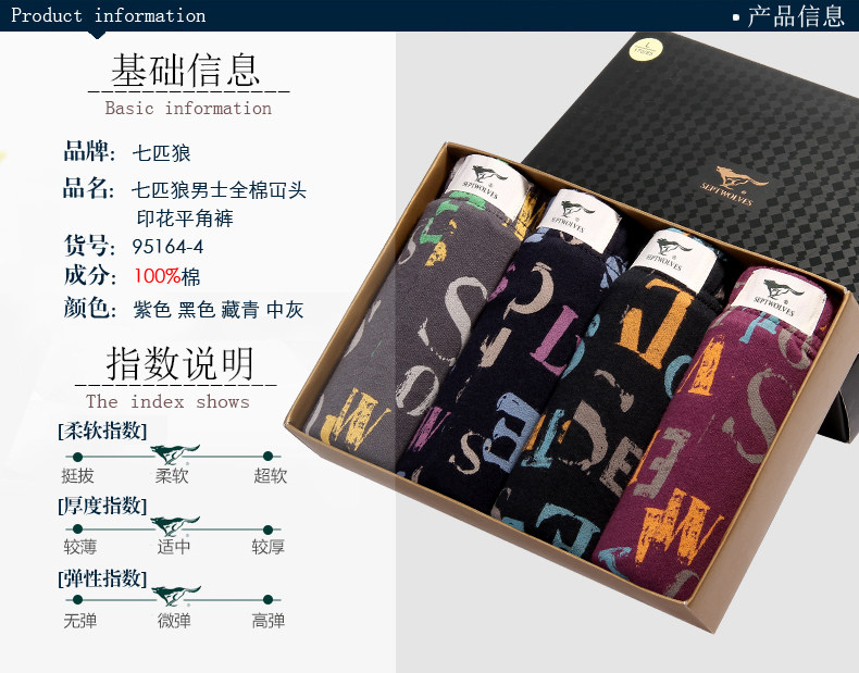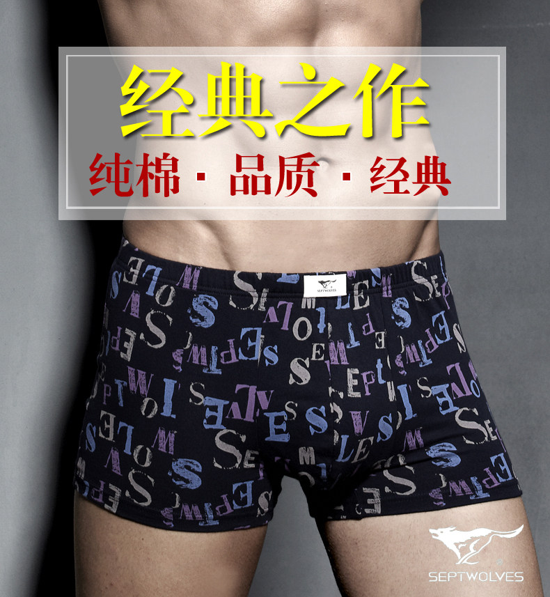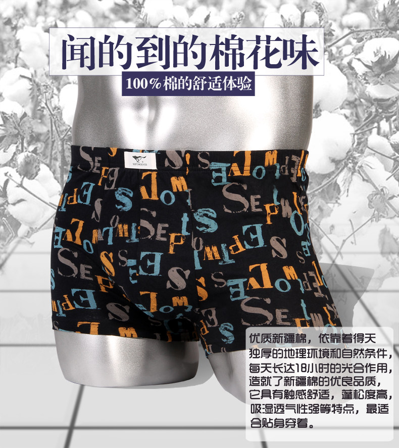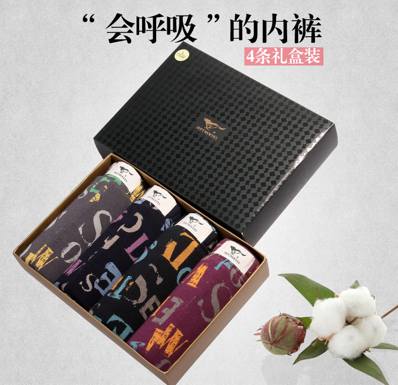 男士内裤 男平角裤纯棉透气中腰性感四角裤头 青年礼盒装?