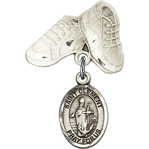 -. Title : Sterling Silver Baby Badge with St. Clement Charm and Baby Boots Pin 1 X 5/8 inches