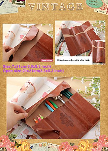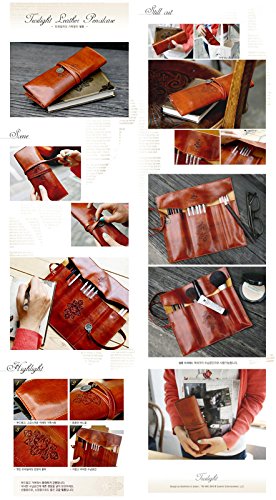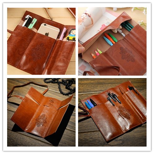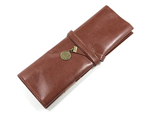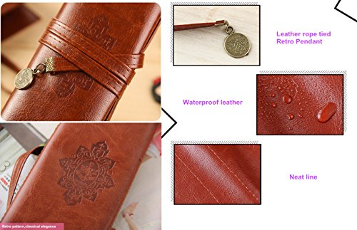 Twilight Retro Bandage Synthetic Leather Pen Bag Pencil Case Makeup Pouch(Dark Brown)