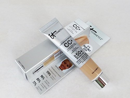 ** This highly pigmented multi-tasking beauty miracle truly covers everything, will not crease or crack in fine lines, and gives you a healthy, Your Skin But Better® glow. Paraben-free and SPF 50+ UVA/UVB Broad Spectrum, Physical Only, Non-Chemical Sunscreen. ** Developed with leading plastic surgeons, Your Skin But Better® CC+TM Cream with SPF 50+ is truly a multi-tasking beauty miracle. It's your SPF 50+ UVA/UVB Physical only sunscreen that protects against the rays that both burn your skin and age your skin. CC+TM is infused with cutting edge Anti-Aging technology and is clinically proven to improve skin texture, brightness and increase skin hydration by 79%. The Anti-Aging hydrating formula is infused with Peptides, Niacin, Algae, Vitamins A, C, B, E, Hyaluronic Acid and Hydrolyzed Collagen along with Antioxidants and exotic natural botanicals for long-term brightening and color-correcting benefits. Key Benefits: ** Highly pigmented and covers absolutely everything and anything. **Scientific breakthrough - clinically proven multi-tasking skin care, coverage and protection all-in-one. ** SPF 50+ Broad Spectrum UVA/UVB non-chemical physical only sunscreen.Feature
