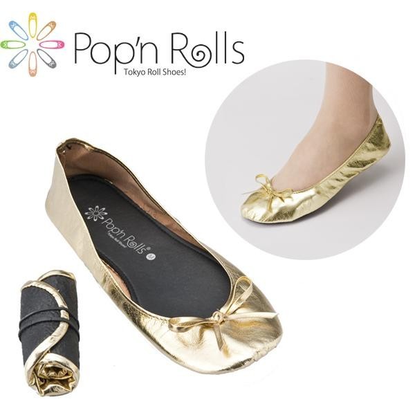 くるんと丸めて持ち運べるバレエシューズタイプのポケッタブルシューズ!使い方はアイデア次第!オフィスや自宅のルームシューズ、ホテルや飛行機の中のセカンドシューズ、授業参観に必要な携帯スリッパ、ドライビングシューズ、外出先で歩き疲れた時や足が痛い時のレスキューシューズ。足にフィットする柔らかなメタリック素材のグリッターゴールド、ラグジュアリーでインパクトがあります。 |