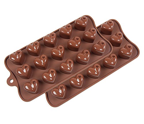 Set of 2 Pcs Premium Silicone Non-stick Heart Shaped Molds for Chocolate Candy Jello Cookies Mini Protein Bars Mini Energy Bars 1 Year Guarantee.