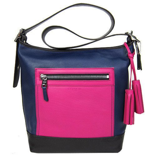 COACH LEGACY LEATHER COLORBLOCK CONVERTIBLE DUFFLE HOBO HANDBAG 19979 MULTI BLUE PINK BLACK