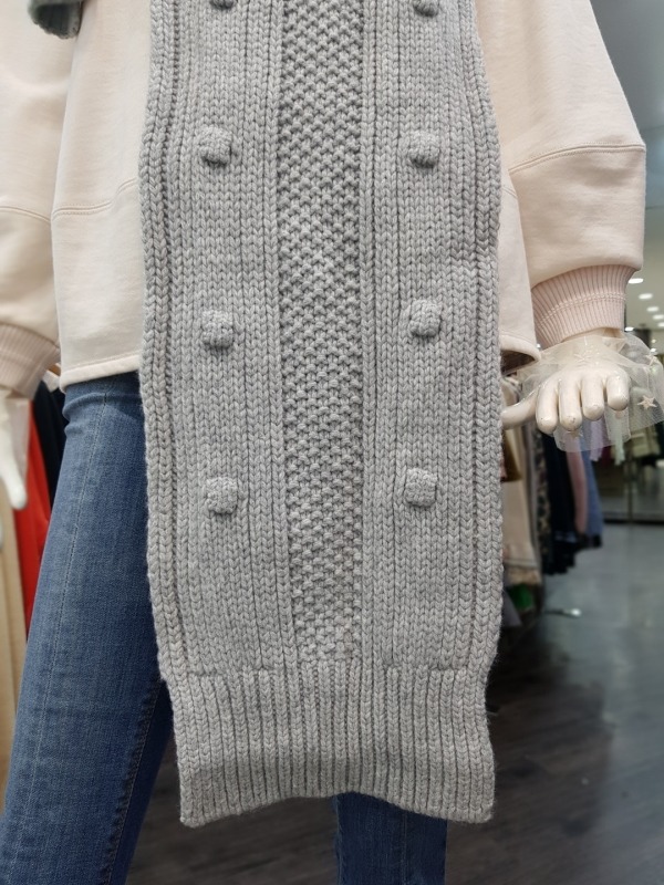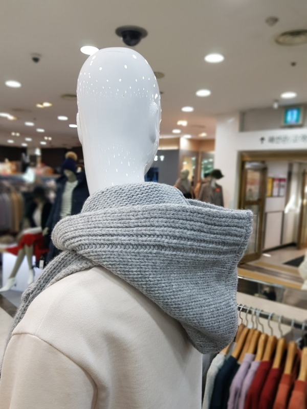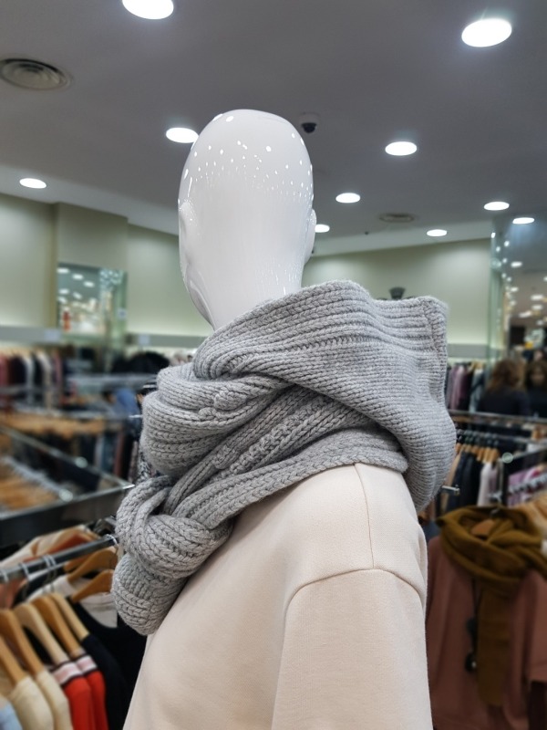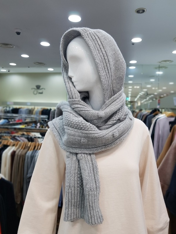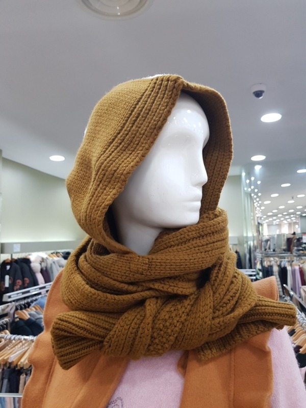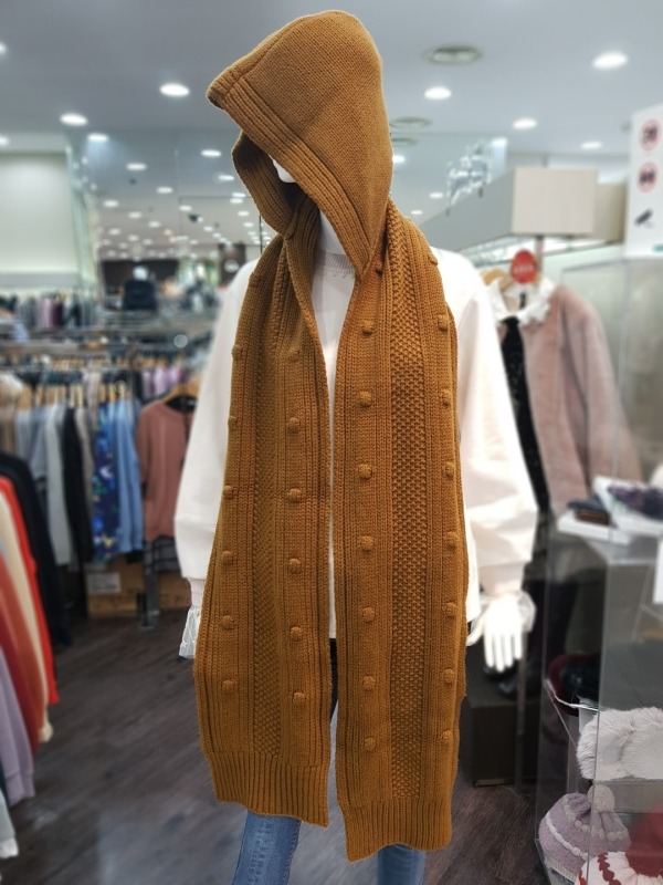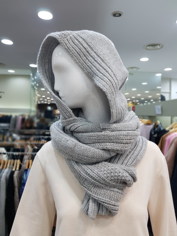 니트 짜임이 이쁜 모혼방의 머플러로 기장이 길고 모자가 달려있어 다양한 연출이 가능합니다.