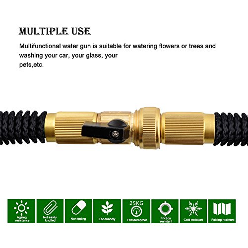 - Excellent Quality with Whole Brass Connectors: This high standard expandable hose will not rust, leak, tear, rip or crack, and are designed to be long lasting. It comes with a high quality spray nozzle with adjustable patterns and whole brass connectors.