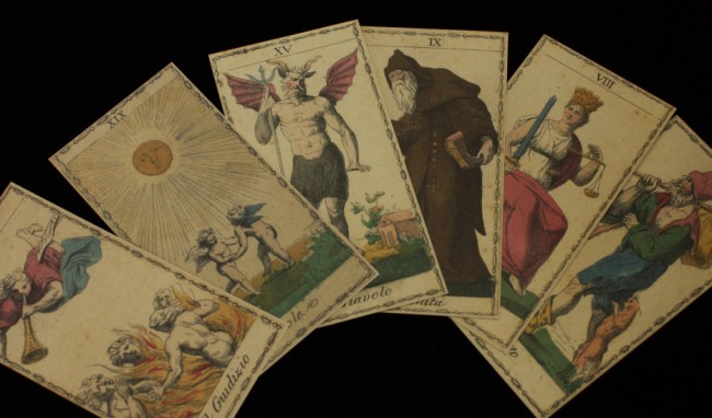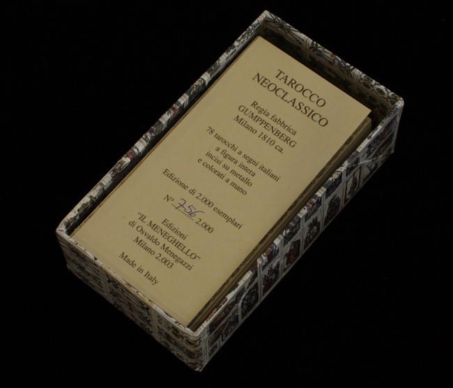 | 1810年FerdinandoGumppenbergから発行された新古典主義タロットカードを2003年Il Meneghello社が復元。 |