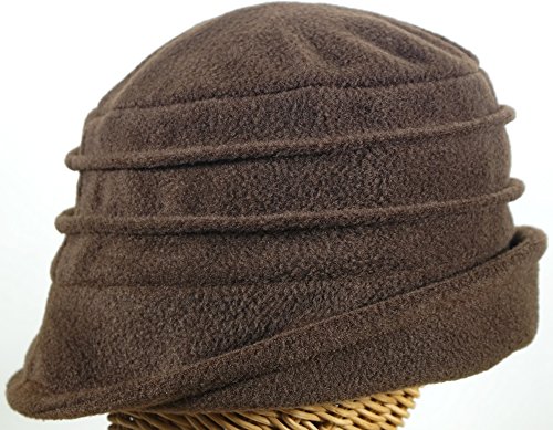 (Hat Stuff Loft)/Accessories/Hats/DIRECT FROM USA/Womens Dip Brim Fleece Pleated Cloche in Brown Made in Massachusetts