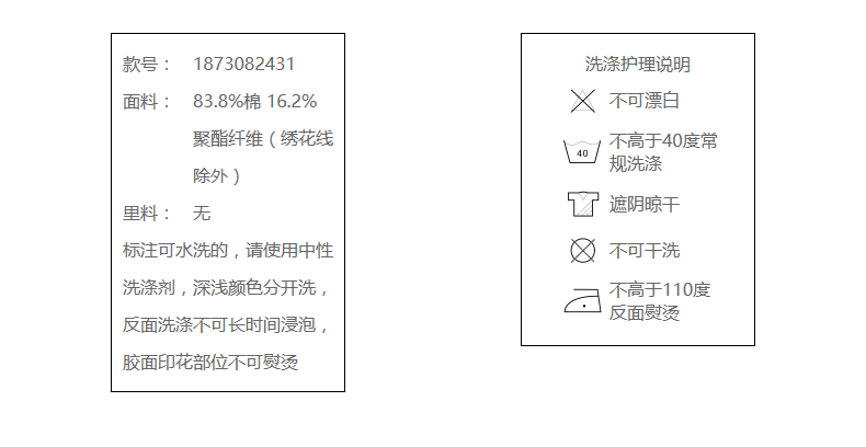 83.8%棉 16.2%聚酯纤维(绣花线除外)