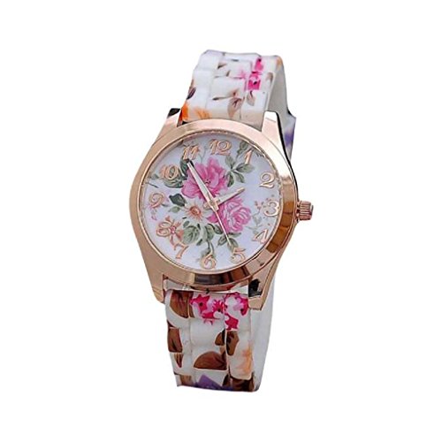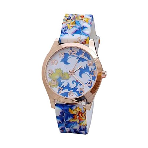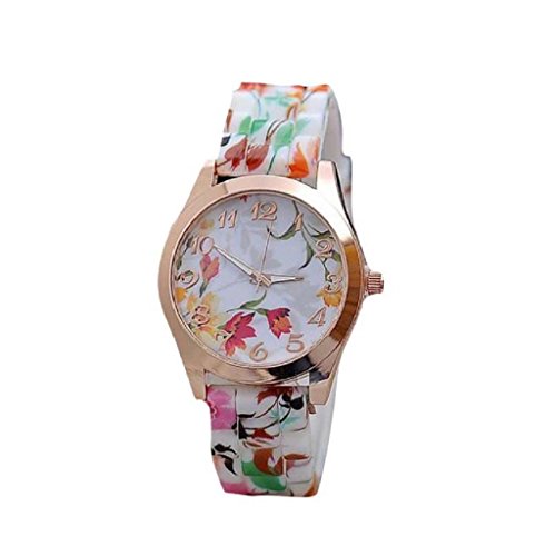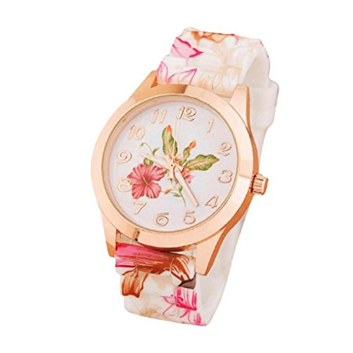 Tonsee 레이디스 워치 아날로그 표시 실리콘 밴드 귀엽 꽃무늬 여성용 손목시계