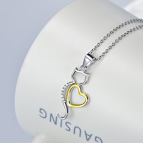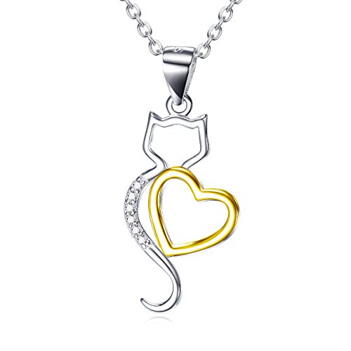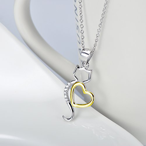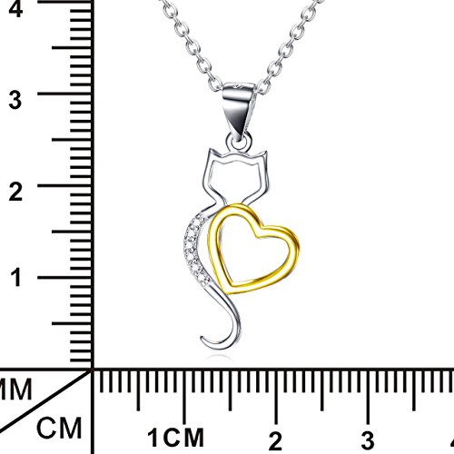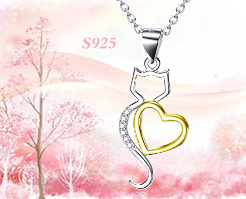 -. Title : Angel caller Lovely Kitty Cat Pendant 925 Sterling Silver Zirconia Heart Pet Necklace With Rolo Chain
