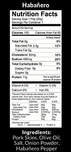 -. Feature : Cooked in Olive Oil / Seasoned with Habañero (Strong, Slow Burn) / 100 Calories per Bag / No Carbohydrates
