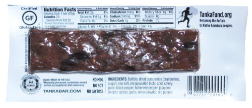 -. Feature : Smoky and slightly sweet flavor, with a nice spiciness that brings just the right amount of heat / Buffalo; dried cranberries (cranberries, sugar); sea salt; black pepper; habanero; jalapeno; spice; red pepper; onion; garlic; lactic acid starter culture / Gluten-free; nitrites-free; MSG-free; hormone-free; dairy-free; soy-free / Low-fat; rich in Omega-3; guaranteed shelf-stable for 12 months / Made in the USA