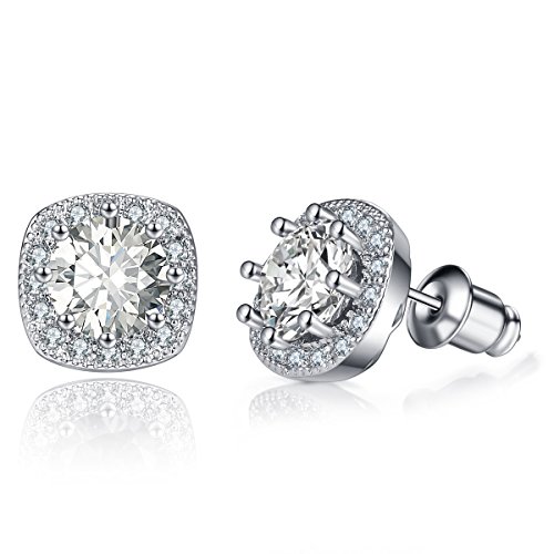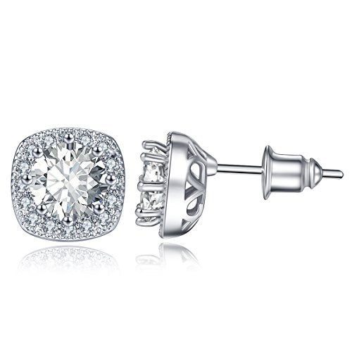 -. Title : Dimayar 18K White Gold Plated Square Shape Stud Earrings Cz Stud Earrings Stud Earrings for Teens&Women