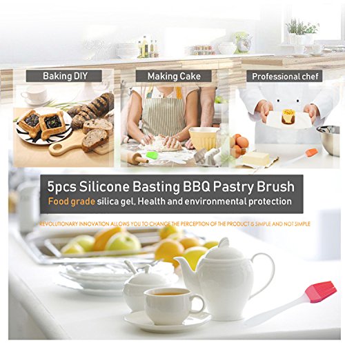 - Set of 5,fit for your different need -- Use as basting brush to spread sauces, marinades on meat or vegetables when grilling or cooking. Perfect pastry brush for spreading melted butter, egg wash or glazes for baking.