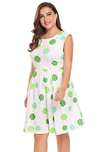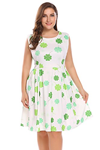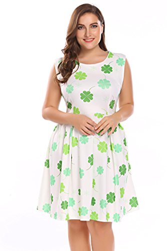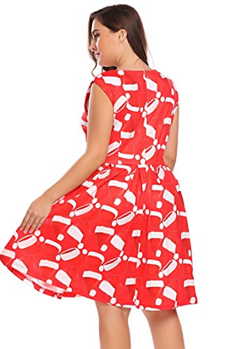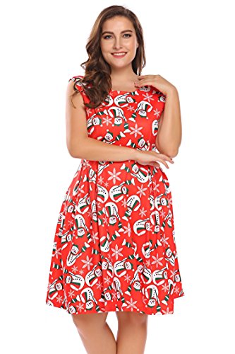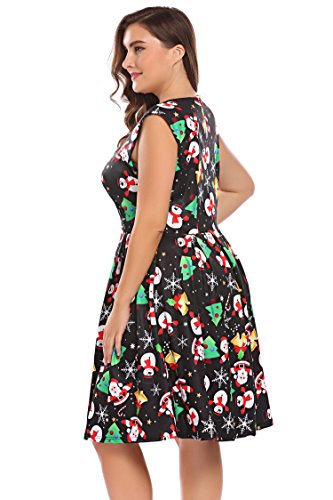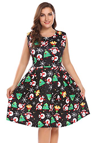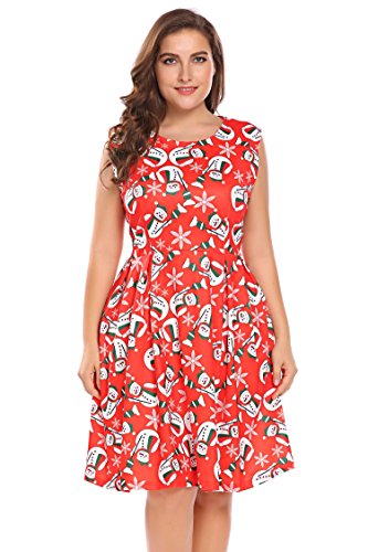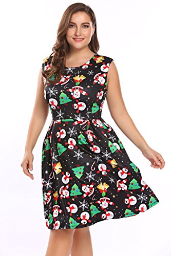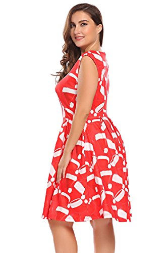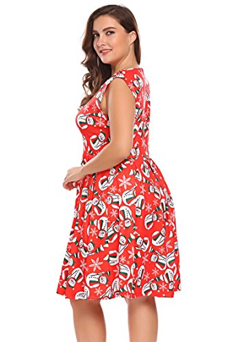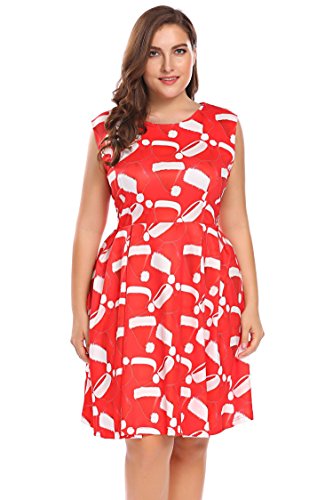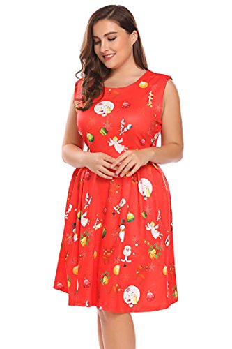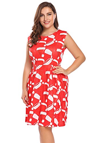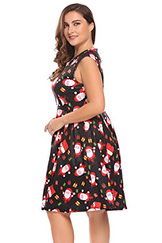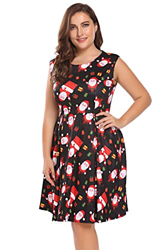 Involand Womens Plus Size Sleeveless Christmas Santa Claus Print Party Cocktail Swing Dress
