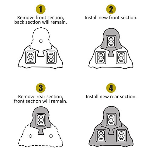 6 DEGREE FLOAT Floating Pedal Cleat system with all the mounting hardware, helps your feet/ankles/legs get a more comfortable position during the riding and holding your feet to the road bike pedals.