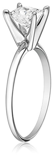 The clean square lines and magnificent sparkle make the princess-cut diamond a wonderful choice for her modern style. Displayed in a classic solitaire setting atop a 14k white gold shank is a 1 carat princess-cut stone. The stone is near-colorless with an I-J rating and has an I1-I2 clarity rating. The bright white finish of the white gold emphasizes the sheer sparkle of the diamond. A timeless token of your love.Feature