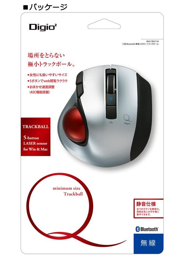手の小さな女性にも扱いやすく、持ち運びも楽々♪小型サイズでありながら薬指と小指が自然な位置に置ける使いやすいフォルムです。 製造国:中国 ※サプライヤー直送品 ご注文後3~4営業日後の出荷となります【商品名】ナカバヤシ Digio2 極小トラックボール「Q」 小型 Bluetooth 静音 5ボタントラックボール シルバー MUS-TBLF134SL