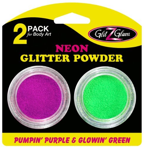 Neon 2-pack glitters are the latest addition to GlitZGlam collection. Say it in a sparkly, NEON way with bright neon body art glitters! Perfect for adding a little (or a lot) of sparkle to create amazing body art tattoos. These are not your everyday colors as they stand out bright and making other "regular" colors shy. Glitter size: 2 of 0.13 OZ each (compared to 0.05-0.07 OZ by other popular brands) Glitter tattoos refills are an essential edition to any glitter tattoo kit enabling you to make amazing body art tattoos for children, teenagers and adults. Glitter Colors included: Pumpin' Purple and Glowin' Green. Use it with any glitter tattoo kit or for other creative sparkly design activities.Feature
