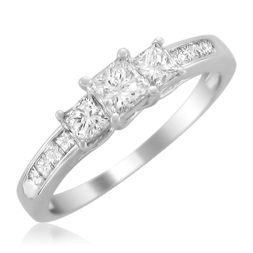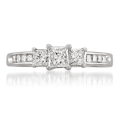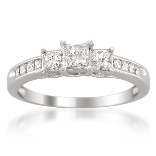 -. Title : 14k White Gold P.R.Incess-cut 3-Stone Three-Stone Diamond Engagement Wedding Ring (1 cttw, I-J, I1-I2)