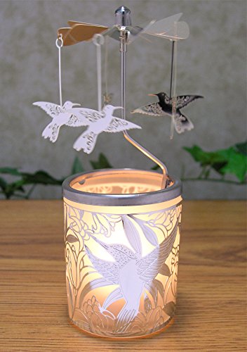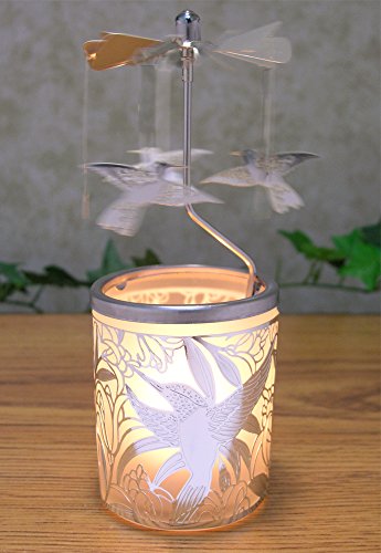 Frosted Glass Candle Holder With Spinning Humming Birds Silver Metal Scandinavian Style Carousel
