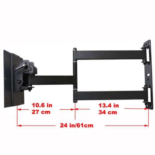 -. Binding : Electronics -. Brand : VideoSecu -. EAN : 0753182732275 -. Feature : Heavy gauge steel construction supports screens up to 88 lbs / Fits most TVs or Monitors from 26" up to 55" (check VESA and weight), great for new ultra slim TVs / Extends up to 24" off wall; Adjustable tilt and wide angle swivel for optimal viewing; Post-installation level adjustment allows the TV to perfectly level / Fits VESA (mounting hole patterns) 100x100/200x100/200x200mm without extender, and also fits VESA 400x400/400x300/400x200/300x300/300x200mm with 4 plate extender / Hardware pack includes standard size of screws to the TV and to the wall -. Label : VideoSecu -. Manufacturer : VideoSecu -. Model : ML550B -. MPN : ML550B -. PackageQuantity : 1 -. PartNumber : ML550B -. ProductGroup : Speakers -. ProductTypeName : AV_FURNITURE -. Publisher : VideoSecu -. Studio : VideoSecu -. Title : VideoSecu Full Motion Articulating Cantilever TV Mount Wall Bracket for most 26"-47" and some up to 55" LCD LED Plasma TV Fits VESA 400X400 400x300 400x200 300X300 200X200 - 88 lbs load capacity A47 -. UPC : 753182732275