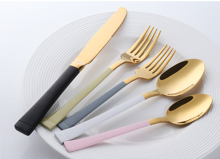 304不锈钢西餐餐具 创意镀钛刀叉勺五件套套装 牛排刀主餐勺叉