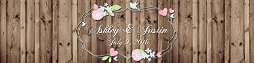 Floral Frame on Rustic Wood Wedding, anniversary, Birthday Water Bottle Labels