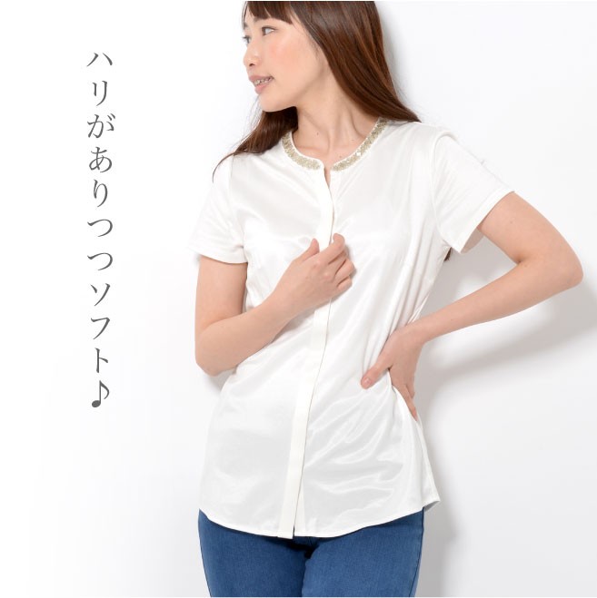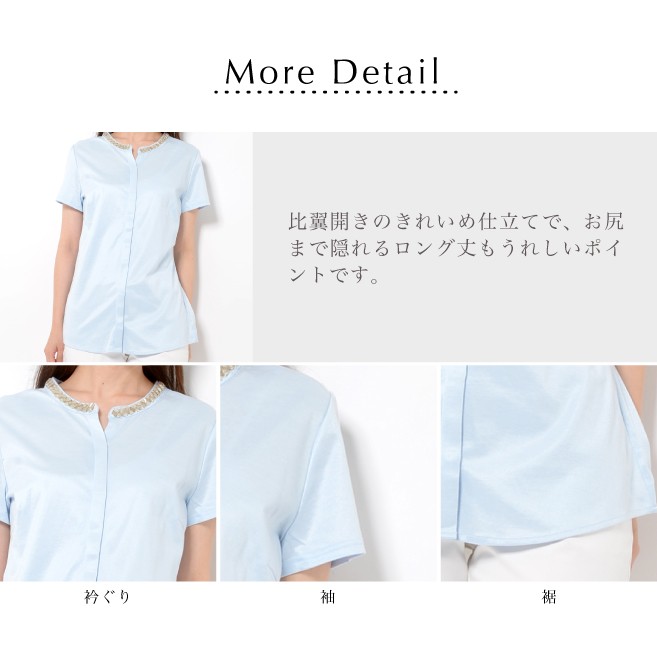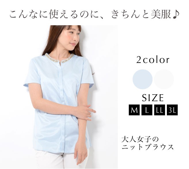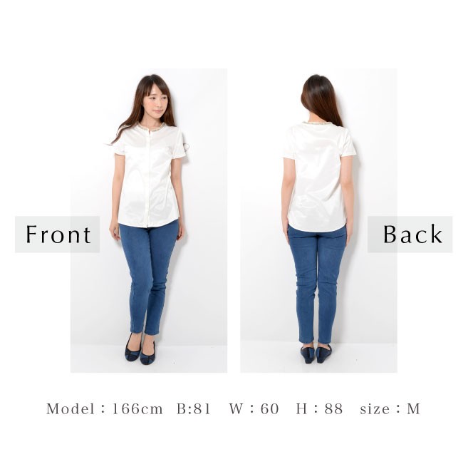 | 実寸 | [M] バスト96(79-87) 身丈70 袖丈17 肩幅37 [L] バスト102(86-94) 身丈72 袖丈17 肩幅39 [LL] バスト108(93-101) 身丈72 袖丈17 肩幅41 [3L] バスト114(100-108) 身丈74 袖丈17 肩幅43 |