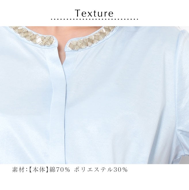 | カラー | 01. サックス 02. オフ白 | 注意点/TH>▼綿混合商品は洗濯時に多少縮む事がございます。 ▼パソコン、モニター等の環境により、実際の商品素材カラーが多少異なる場合が御座います。予めご了承ください。 |