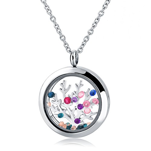 -. Title : Necklace,Tree of Life Floating Charm Living Memory Lockets Stainless Steel Necklace for Women,Best Gift for Mother Wife Girlfriend at Christmas Birthday