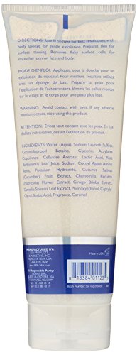 Invigorating body scrub adjusts your skin’s ph. to increase the length of your tan and give an even application. Use in the shower as a refreshing body cleanser to prepare skin before tanning. Packed with healthy, natural ingredients, this gentle exfoliator uses biodegradable granules to loosen dead cells so your skin is more receptive to self-tanning products. Fresh prep scrub has a citrus melon scent to wake up the skin and give it a spa-like polish. Gentle enough for face and body. Aloe Vera promotes hydration while refining the skin for a satin finish with no oily residue, so your tan develops perfectly.