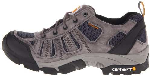 You'll always enjoy solid footing with these Carhartt waterproof work shoes These grey and black oil-tanned leather work shoes feature unobtrusive Oxford-style lacing, Goodyear welt construction, waterproof membranes and slip resistant outsoles. Such an array of stability features makes these Carhartt work shoes ASTM F2892-11 EH-rated and especially ideal for jobs where you need to be one step ahead of everyone else at all times.Feature