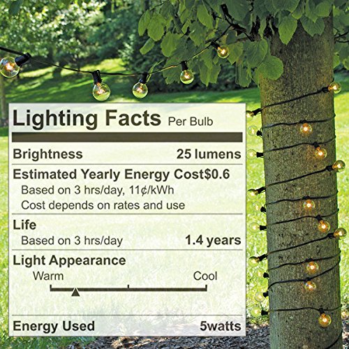 - Brighten up your space with our 25ft G40 Patio String Lights. Each strand includes 25 clear, vintage style bulbs, so you can bring a little magic and charm to your patio, backyard, bedroom, party…whatever!