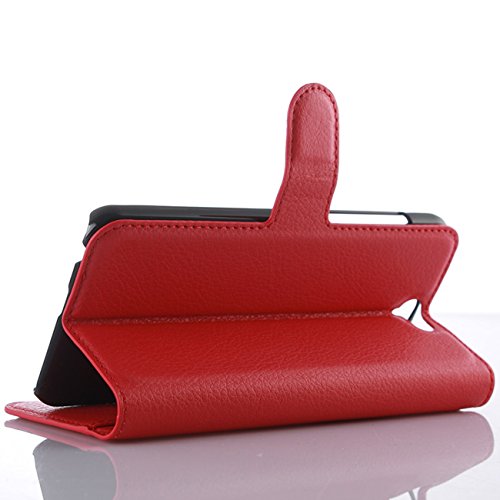 Fettion HTC One A9 Case, Premium PU Leather Wallet Flip Case Cover with Stand Card Holder for HTC One A9 (2015 Release) Phone (Wallet - Red)