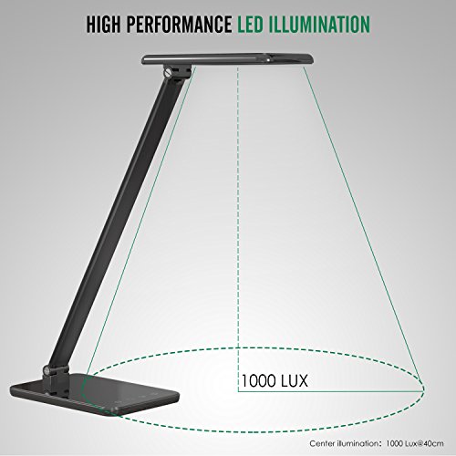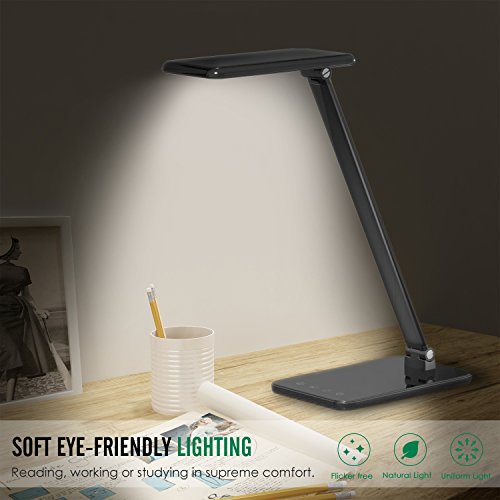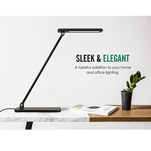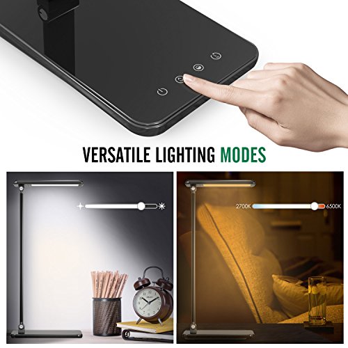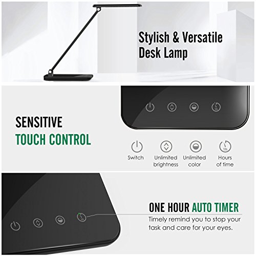 MoKo Dimmable LED Desk Lamp, 8W Touch-Sensitive Control Eye-Caring Working / Reading Table Lamp, Continuously Dimmable Brightness & Color Temperature, 1-Hour Auto Timer, Adjustable Arm & Head, Black