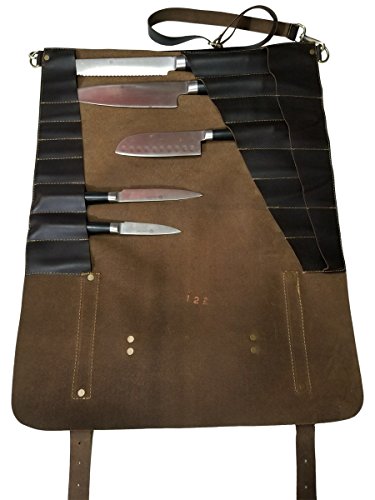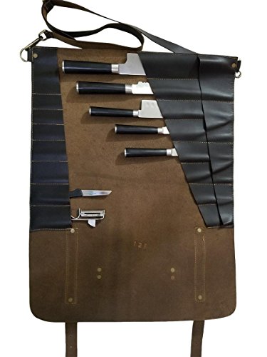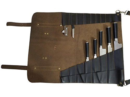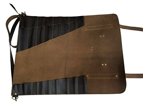 Lightweight Genuine Premium Dark Brown Leather 8 Pockets Professional Chef Knives Bag/Chef Knife Roll