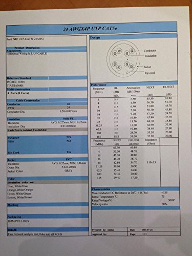 100% SOLID COPPER CORE 0.51mm, data speed (10/100/1000mb), RoHS Compliant, TIA/EIA 568B Standard, Fluke tested - professional quality for High Definition (HD). UTP (Un-shielded Twisted Pair), 8 Core with 4 twisted pairs (white/blue, white/green, white/orange, white/brown)