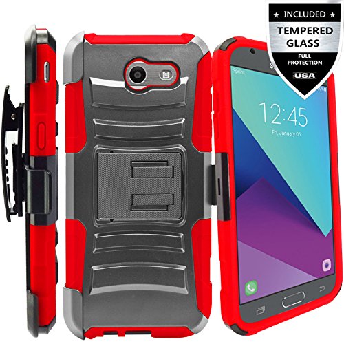-. Feature : Dual layered hybrid protection with soft silicone double enforced with tough polycarbonate shell with Y-shaped kickstand,designed for the Samsung Galaxy Express P.R.Ime 2. / Perfect match and fit for device that also retains easy access to all functionalities, including all buttons, camera, headphone jack, speakers, microphone and charging port. / Innovational design provides quick and easy installation and removal without use of tools. / Holster clip can rotate 180 degrees and holster layer can be easily attached with a satisfying slide-and-lock action. Efficiently designed kickstand offers convenient positioning for media viewing on your device. / For Samsung Galaxy Express P.R.Ime 2 / Galaxy J3 P.R.Ime /Galaxy J3 Eclipse/Galaxy J3 2017(AT&T)/Galaxy J3 Mission,Included Tempered Glass Screen Protector.