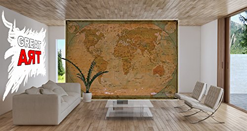World map Atlas Globus - historic world map photo wallpaper - vintage retro motif - XXL world map mural - wall decoration - old age world map 55 Inch x 39.4 Inch