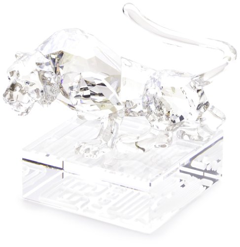 - Tiger in faceted and non-faceted silver shade crystal with Moroda Sahara crystal eyes; faceted clear crystal rectangular base