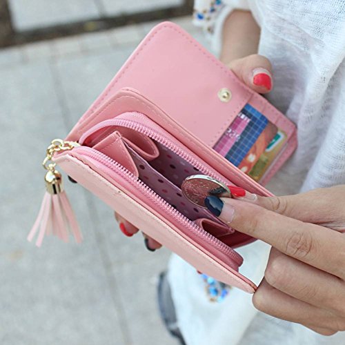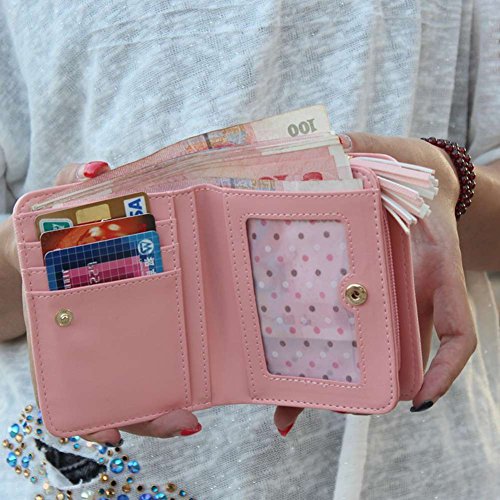 -. Feature : Material: 100% synthetic leather / Short section: 12*2*9.5cm Weight: 110g / Short section: 3 credit card slots, 1 clear ID windows, 1 note compartment, 2 accordion folds pockets, can hold coin and cash; / Two sizes design, is perfect for you and your daughter use simultaneously that will receive many attention and compliments; / NOTE: Free shipping with tracking number by USPS, the delivery time 8-10 working days!