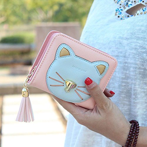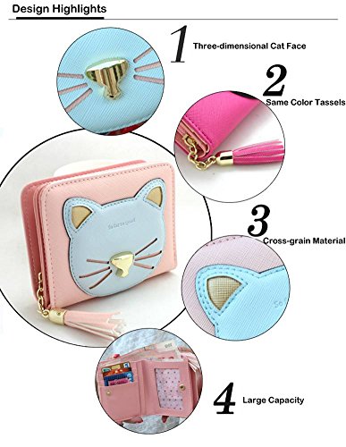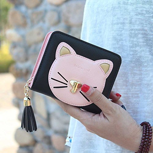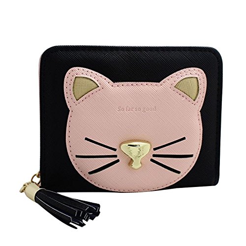 -. Title : Badiya Patchwork Cute Cat Face Tassel Zip-around Short/Long Wallets Clutch Purse
