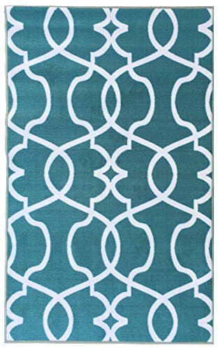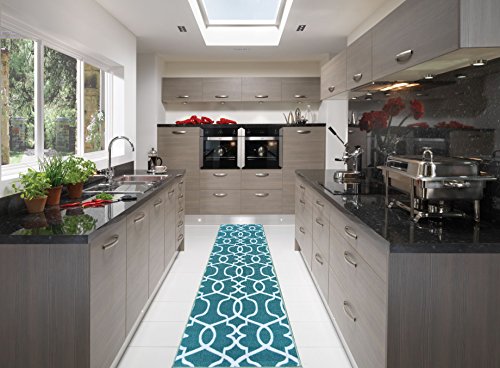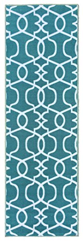 Berrnour Home Rose Collection Blue Moroccan Trellis Design Runner Rug With Non-Skid (Non-Slip) Rubber Backing (2'3"X7')