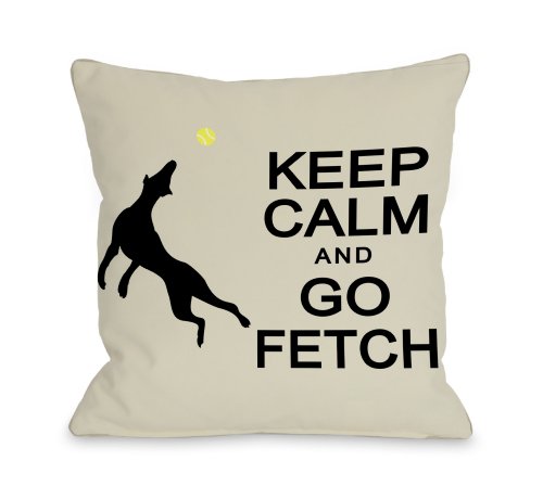 One Bella Casa Keep Calm and Go Fetch Pillow, 18 by 18-Inch